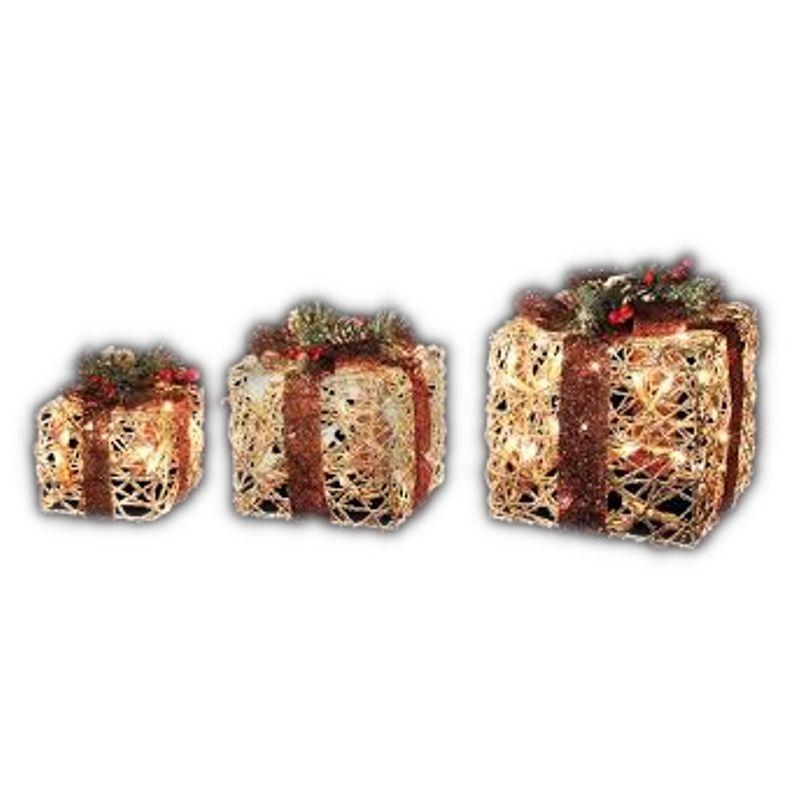 Conjunto de 3 cajas decorativas de navidad con iluminación interior.
